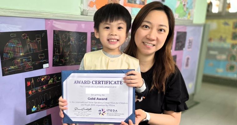 | ▲黃同學榮獲全港朗誦藝術表演賽2025 幼稚園K1 普通話兒歌銅獎。 |