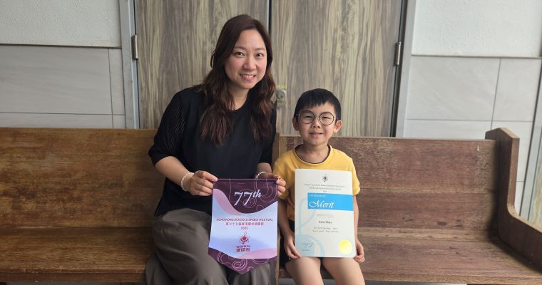 | ▲陳同學榮獲77th Hong Kong Schools Speech Festival 2025, Solo Verse Speaking Open Ages 5 and 6, Boys and Girls, First Place |