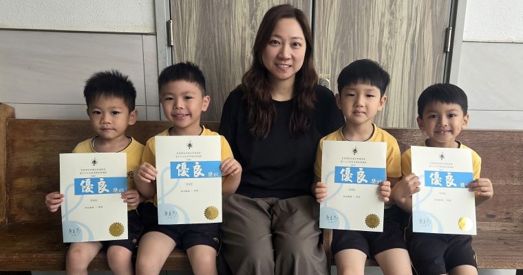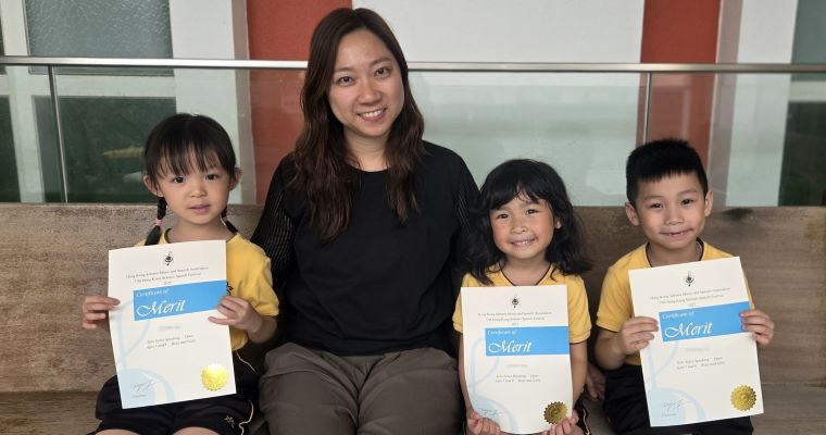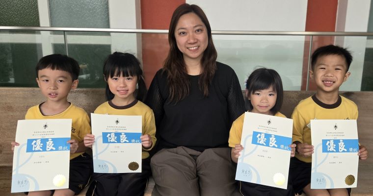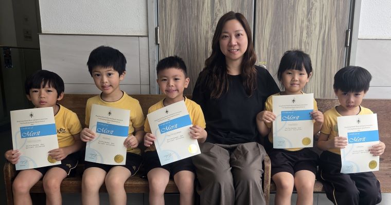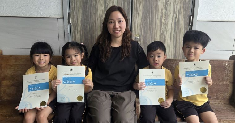| ▲麥同學、廖同學、林同學及吳同學榮獲77th Hong Kong Schools Speech Festival 2025, Solo Verse Speaking Open Ages 5 and 6, Boys and Girls, Merit |