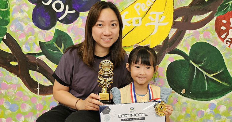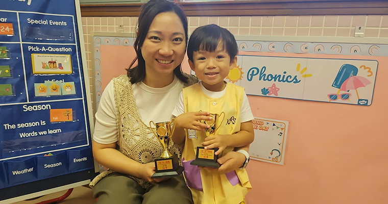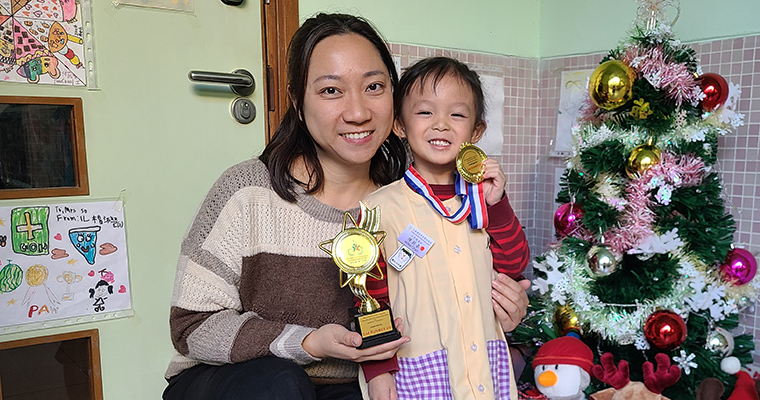 | ▲秦同學榮獲「KPCC金口盃2024」普通話-兒歌K1組冠軍及第八屆英語聖經詩篇與故事朗誦比賽金句朗誦冠軍。 |