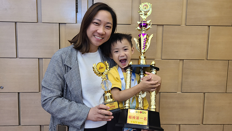 | ▲麥同學榮獲九龍城區消防小隊長體能競技挑戰賽2024 幼兒和級組個人賽「水上拯救」和「開喉」冠軍及「YOYO TEST」亞軍。 |