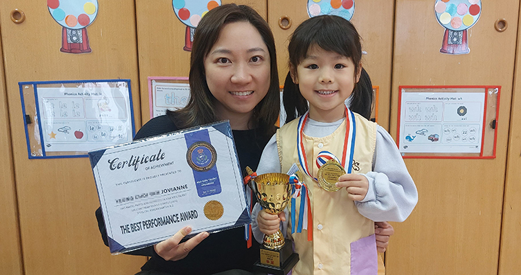 | ▲周同學榮獲IYMC 2024 International Arts and Culture Music Competition (Hong Kong Regional) Vocal Aged Group Foundation, Champion、香港兒童表演藝術交流協會「我是小歌手 – 全港兒童歌唱比賽」粵語 – 一蚊龜(K.2) 冠軍、「英文串字挑戰賽 – 全港兒童英文串字大賽」(初級組)冠軍及粵港澳大灣區教育發展協會 2024粵港澳大灣區朗誦大賽(香港賽區)幼稚園組普通話 季軍。 |