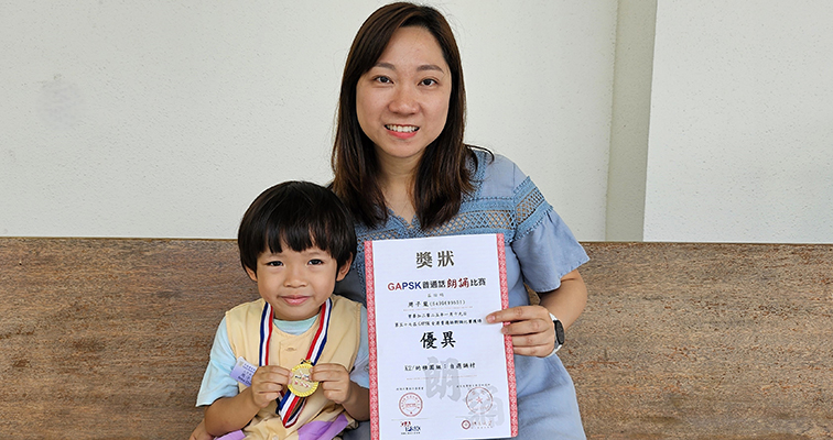 | ▲周同學榮獲第五十七屆GAPSK普通話朗誦比賽K.2幼稚園組:自選誦材優異獎。 |