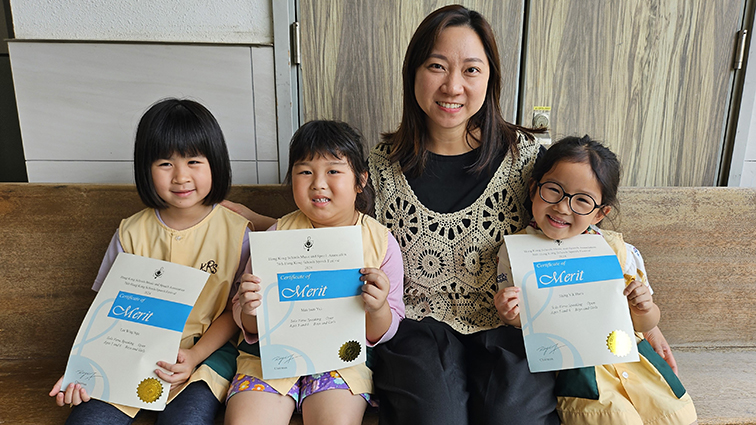 | ▲陳同學榮獲朗誦及音樂推廣協會主辦第十八屆全港學生公開朗誦比賽2025幼兒組K1普通話兒歌季軍。 |