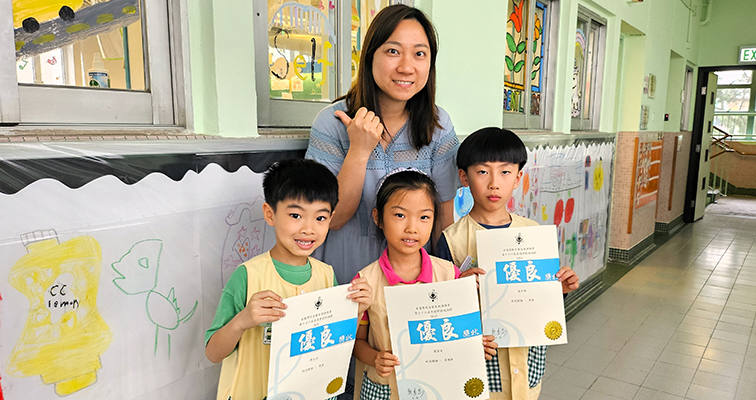 ▲(左)陳同學榮獲由亞太兒童及青少年優才協會頒發2024 EARTH DAY CHILDREN COLORING COMPETITION K1組別金獎。