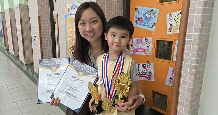 | ▲陳同學榮獲亞太兒童及青少年優才協會主辦2024亞太區幼兒奧數競賽金獎及香港文藝協會主辦全港十八區九龍城區視藝比賽繪畫組(第三屆)幼稚園組K2組冠軍。 |