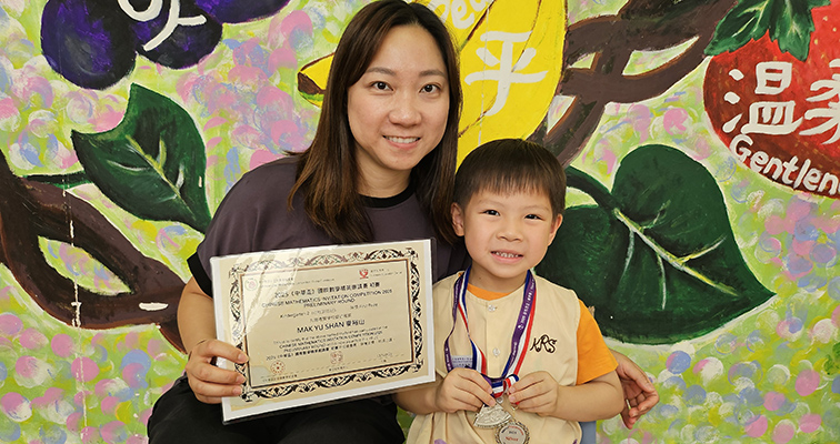 | ▲麥同學榮獲2025《中華盃》國際數學精英邀請賽初賽幼稚園低班組別一等獎 及 啟思盃春季賽幼稚園低班組別「學而思盃」二等獎。 |