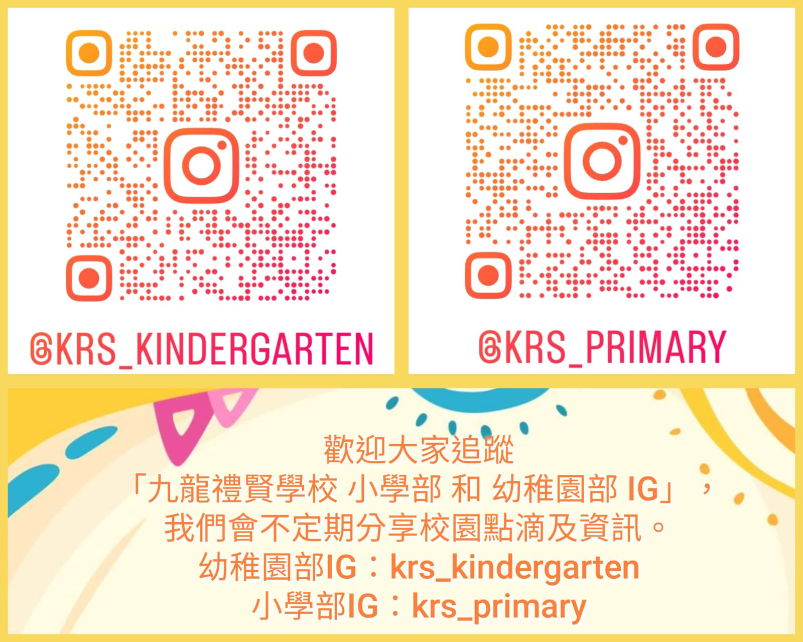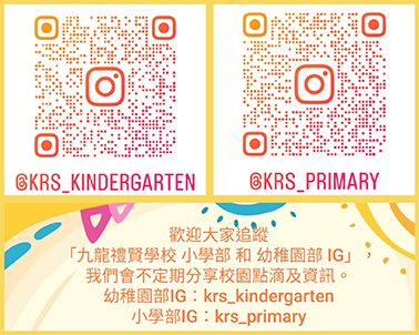 歡迎大家追蹤九龍禮賢學校小學部和幼稚園部IG,我們會不定期分享校園點滴及資訊。 |